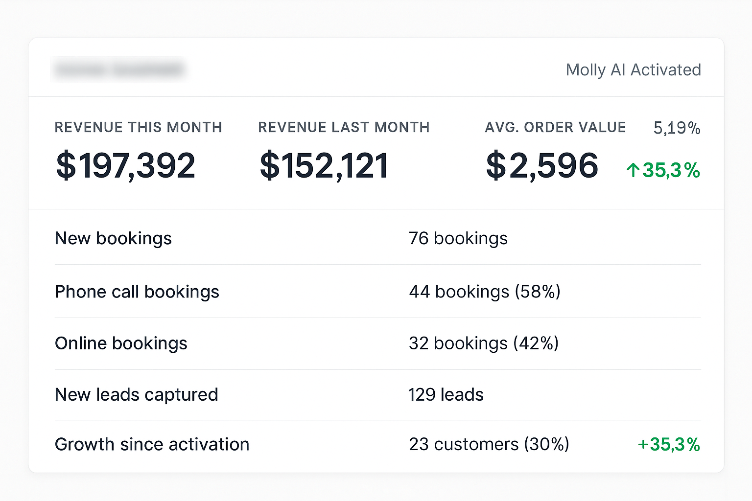 They customized everything, and Molly (our AI phone receptionist) knew all of our services, our pricing, the appointment system, the way we talk to our customers, the way our customers like to be talked to, the slang people use in our area, and all the technical knowledge from our industry — which some of our team members are still struggling with.